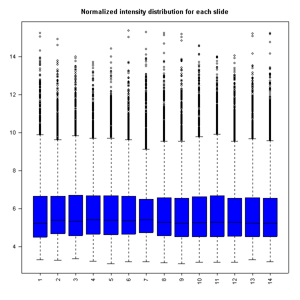 Normalized intensity distribution for each slide
