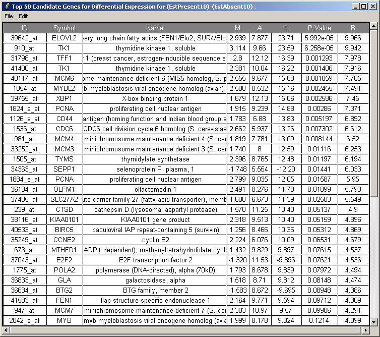 affylmGUI is a Graphical User Interface for analysis of Affymetrix microarray data, using Gordon Smyth's limma package (Linear Modes for MicroArray data). limma and affylmGUI are both R packages. The limma package offers R users a command-line interface to state-of-the-art techniques for linear modelling of microarray data and for identifying differentially expressed genes. The affylmGUI package, while not as powerful as limma to the expert user, offers a simple point-and-click interface to many of the commonly-used limma and affy functions. To use the affylmGUI package, you need to have R 1.8.1 or later, Tcl/Tk 8.3 or later (ActiveTcl for Windows/Linux or Fink Tcl/Tk for MacOSX (X11)) and the limma, affylmGUI, tkrplot R packages. The affyPLM (Bioconductor), R2HTML (CRAN) and xtable (CRAN) packages are recommended. The limma and affyPLM packages are available on Bioconductor, the affylmGUI package is available here, and the other packages are available from CRAN. affylmGUI has been succesfully tested on Windows 2000, Windows XP, and Red Hat Linux, and on Mac OSX with X11.