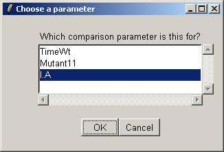 Now we will compute a linear model for this set of arrays, using the IA parameterization. After clicking on "Compute Linear Model Fit" from the Linear Model menu, limmaGUI will ask us whether we want to create a new parameterization. Select "No", i.e. we don't want to create a new parameterization, because we want to use the IA parameterization which we have already created.