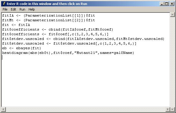 This feature has not yet been implemented in a point-and-click way, but we will demonstrate how to combine the results of the two parameterizations and plot a heat diagram, using the "Evaluate" menu. Click on "Evaluate R Code" from the "Evaluate" menu.